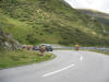 Starting out - top of Oberalppasse The Trike Tour September 19: Andermatt to Ilanz (35 miles) Trike assembled, box shipped, it's down to the Andermatt train station for a short ride up the mountain to the top of Oberalppass. We had the option of cycling the 6 km (with several hundred meters of climbing) to the top of the pass, but figured discretion the better part of valor and opted for the train. The route from the pass to Ilanz is essentially all downhill, and not just gentle downhills. In places, the road folds back upon itself while taking an angle only slightly less steep than a roller coaster. As we descend, I try to keep our speed under 35 mph by alternating the trike's front brakes - hold the brake in a white knuckle grasp until the pads smoke, then grab the opposite brake till it smokes. Hopefully, by then the first brake has cooled enough to have some effect. Within a few miles, the brake pads have crazed and make a horrendous howling noise when the brakes are applied. So we descend the mountain, trying to admire the scenery, scared of the precipitous drops at each turn, praying that the brakes hold. We blow through several small villages, hoping the local polezi are not running a speed trap, as we're well above the speed limit. At one point, a bolt holding the right disc loosens, requiring a stop to retorque the disc. After several miles, we pull to a squealing stop at a small village cafe and