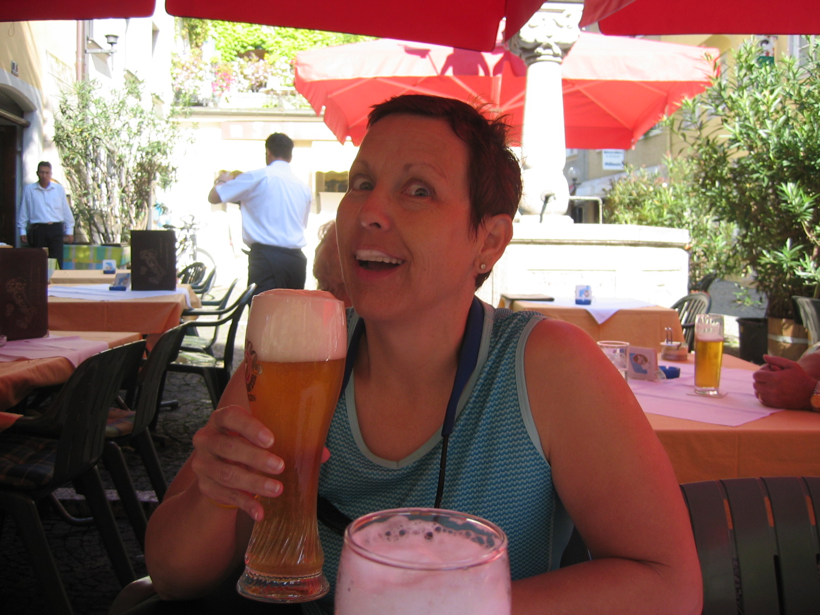 Sometimes language issues get to us. At an afternoon refreshment stop, our waitress suggests we try a local dessert specialty. It's very unusual - ice cream covered with some sort of noodle made from chestnuts, topped with whipped cream. Our target city is Bregenz, but as the miles pile up, we decide to stop in